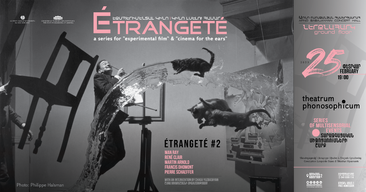 Where do the images come from? What is the difference between dream images and images perceived during wakefulness? Cinema, initially the art of moving images, can sometimes reveal a solution to the enigma… In this series, we will present and discuss experimental films beyond the mainstream of commercial cinema: mostly proliferation of images and events, than linear stories . If the attachment to common structured meanings is obliterated, the proliferating images can slowly transforms our state of consciousness…. Alternating with the avant-gard films, also visionary acoustic artifacts of the so-called “cinema for the ears” will be presented (in particular from the French tradition): purely sound images projected into space that wedge themselves into the recesses of the psyche. The search for the étrangeté (“strangeness“ or “otherness“), i.d. the Unknown, is the raison d’être, the privilege and the risk of all artistic activity.